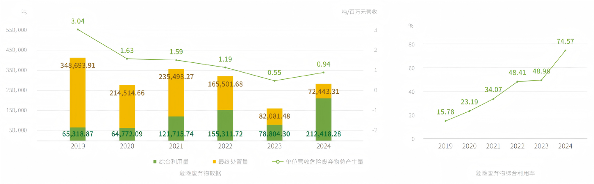 2024年,公司环保投入达14.34亿元,全年未发生重大环境污染事件。尾矿回收利用率提升至24.45%,同比增长0.59%。单位营收危险废物产生量为0.94吨/百万元营收,同比增长70.9%,但危险废弃物综合利用率大幅提升至74.57%,显示资源利用与污染控制的平衡仍是公司需重点关注的领域。